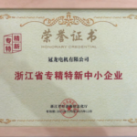 专注与创新 – 冠龙电机荣获“浙江省专精特新中小企业”称号